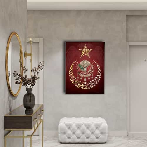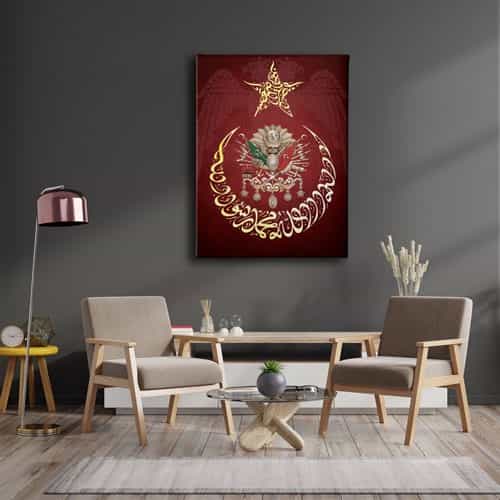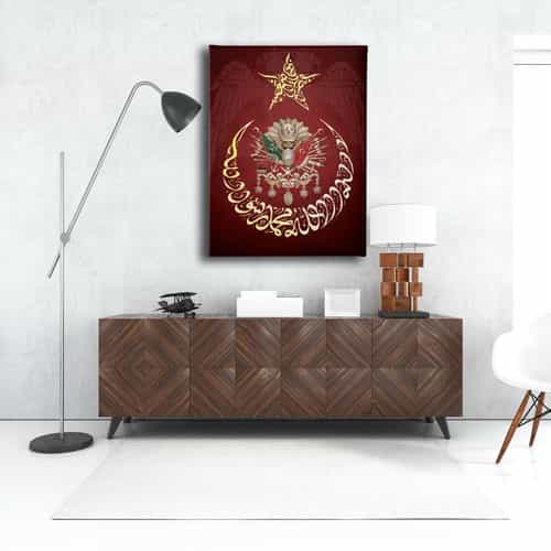Ay Yildiz - Kelime-i Tevhid - Cift Basli Kartal - Osmanli Devlet Armasi Kanvas Tablo