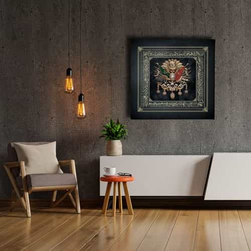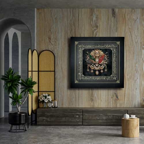 Ayet - El Kursi Osmanli Devlet Armasi Kanvas Tablo