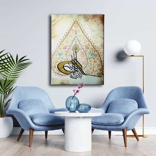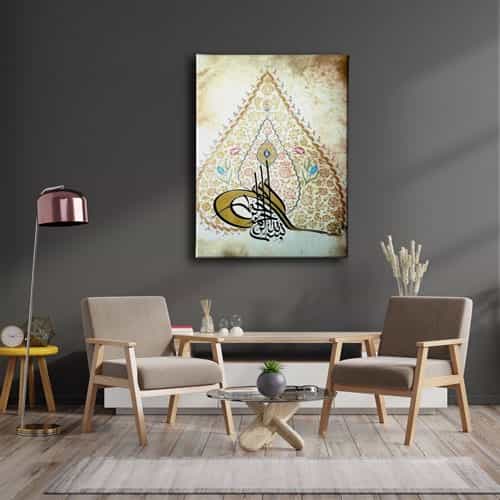 Besmele Tugra Tezhibli Hat Tablo: Bu sik tablo, Desenlio'nun ozel koleksiyonunda yer alan premium bir tasarim urunudur. Kanvas Tablolar>hat Yazili kategorilerinde dikkat ceken bu parca, HATD192 urun koduyla yuksek standartlarda uretilmistir. Sira Disi DokunuslarDekorasyonunuza farkli ve alisilmisin disinda dokunuslar yapmak istiyorsaniz, ozel olculerde uretilen hat ve tezhip gorsellerinden olusan kanvas tablolar tam da aradiginiz dokunuslar olacaklar.... Yasam alanlariniza sanatsal bir dokunus katmak ve duvarlarinizda estetik bir odak noktasi olusturmak icin idealdir.