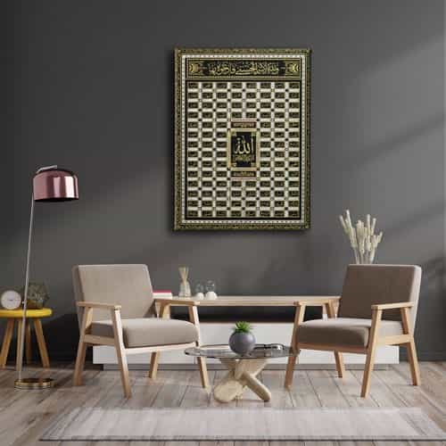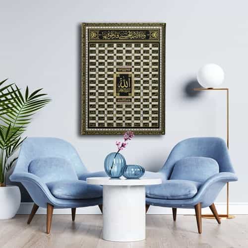 Esma-ul Husna Islemeli Tablo: Bu sik tablo, Desenlio'nun ozel koleksiyonunda yer alan premium bir tasarim urunudur. Kanvas Tablolar>esma-ul Husna kategorilerinde dikkat ceken bu parca, ESD102 urun koduyla yuksek standartlarda uretilmistir. Dinimizden Gelen Huzur Tum Evinizi Sarsin Allah Teala’nin Kur’an’da ve hadislerde gecen pek cok ismi vardir. Insanlar bu isimleri ogrenerek Allah’i tanir, O’nu okuyan sifa bulur hemde gercek bir musluman olur . Kur’an’da, “En guzel isimler Allah’indir. O hâlde O’na o guzel... Yasam alanlariniza sanatsal bir dokunus katmak ve duvarlarinizda estetik bir odak noktasi olusturmak icin idealdir.