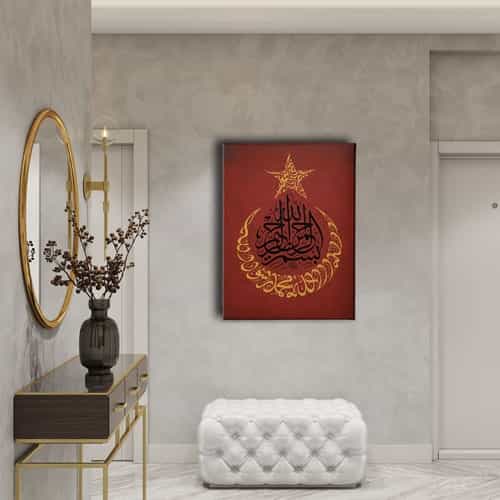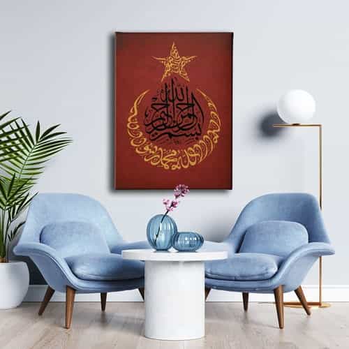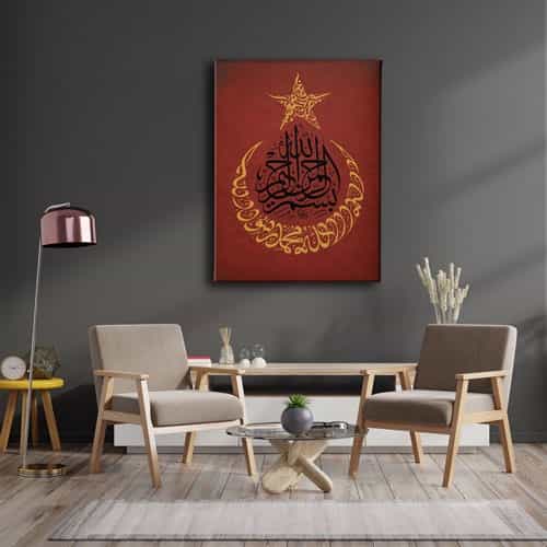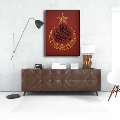 Kelime-i Tevhid- Besmele- Ay Yildiz Kanvas Tablo