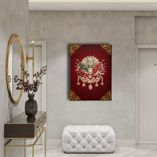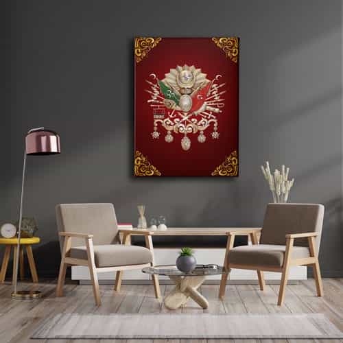 Kirmizi Osmanli Devlet Armasi Kanvas Tablo : Bu sik tablo, Desenlio'nun ozel koleksiyonunda yer alan premium bir tasarim urunudur. Kanvas Tablolar>arma Bayraklar kategorilerinde dikkat ceken bu parca, ABD113 urun koduyla yuksek standartlarda uretilmistir. Sanli Bayraklar Duvarlarinizda DalgalansinBir ulkenin en guzel temsillerinden biri bayragidir. Ofisiniz, eviniz veya siz neredeyseniz sanli bayraklardan olusan ve ozel olculerle uretilen kanvas tablolar ile duvarlariniz ulkenizden bir parca tasisin.Osmanli Devlet Armasi Kudretin SimgesidirOsmanli Devleti’nin gucunu hissetmek, gelen misafirlerinize bu gucu hatirlatmak icin Osmanli Devlet Armasi kan... Yasam alanlariniza sanatsal bir dokunus katmak ve duvarlarinizda estetik bir odak noktasi olusturmak icin idealdir.