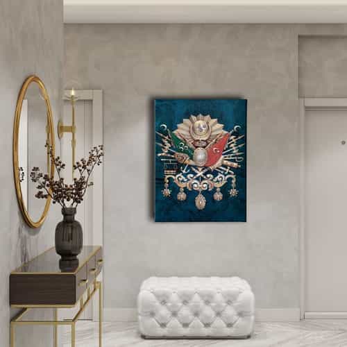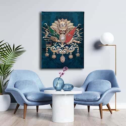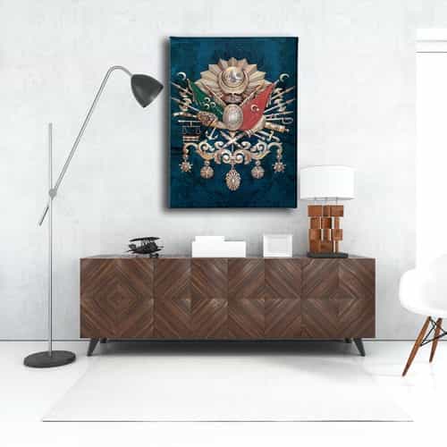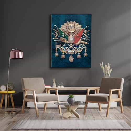 Mavi Osmanli Devlet Armasi Kanvas Tablo : Bu sik tablo, Desenlio'nun ozel koleksiyonunda yer alan premium bir tasarim urunudur. Kanvas Tablolar>arma Bayraklar kategorilerinde dikkat ceken bu parca, ABD103 urun koduyla yuksek standartlarda uretilmistir. Sanli Bayraklar Duvarlarinizda DalgalansinBir ulkenin en guzel temsillerinden biri bayragidir. Ofisiniz, eviniz veya siz neredeyseniz sanli bayraklardan olusan ve ozel olculerle uretilen kanvas tablolar ile duvarlariniz ulkenizden bir parca tasisin.Osmanli Devlet Armasi Kudretin SimgesidirOsmanli Devleti’nin gucunu hissetmek, gelen misafirlerinize bu gucu hatirlatmak icin Osmanli Devlet Armasi kan... Yasam alanlariniza sanatsal bir dokunus katmak ve duvarlarinizda estetik bir odak noktasi olusturmak icin idealdir.