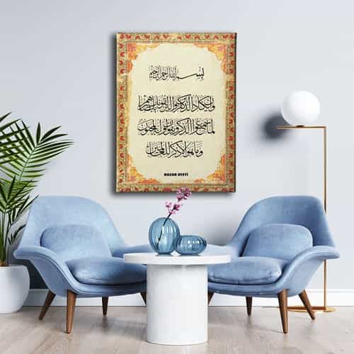 Nazar Ayeti Tezhipli Dini Kanvas Tablo: Bu sik tablo, Desenlio'nun ozel koleksiyonunda yer alan premium bir tasarim urunudur. Dini>ayetler Ve Sureler kategorilerinde dikkat ceken bu parca, AYD105 urun koduyla yuksek standartlarda uretilmistir. Guzel Dilekler Ayetlerde GizliNazar Duasi, Bereket Duasi, Ayet-El Kursi kanvas tablolari ile dualar evinizden ve ofisinizden eksik olmasin. Kiymetli dualardan olusan kanvas tablolar ile hem evinizi/ofisinizi dekore edin, hem de dualarin kiymetli gucunu cevrenizden eksik etmeyin.... Yasam alanlariniza sanatsal bir dokunus katmak ve duvarlarinizda estetik bir odak noktasi olusturmak icin idealdir.