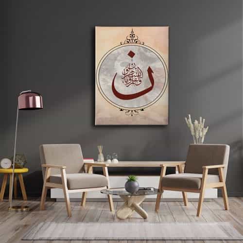 Nun Kalem Suresi 1.ayet Motifli Hat Tablo: Bu sik tablo, Desenlio'nun ozel koleksiyonunda yer alan premium bir tasarim urunudur. Kanvas Tablolar>hat Yazili kategorilerinde dikkat ceken bu parca, HATD118 urun koduyla yuksek standartlarda uretilmistir. Sira Disi DokunuslarDekorasyonunuza farkli ve alisilmisin disinda dokunuslar yapmak istiyorsaniz, ozel olculerde uretilen hat ve tezhip gorsellerinden olusan kanvas tablolar tam da aradiginiz dokunuslar olacaklar.... Yasam alanlariniza sanatsal bir dokunus katmak ve duvarlarinizda estetik bir odak noktasi olusturmak icin idealdir.