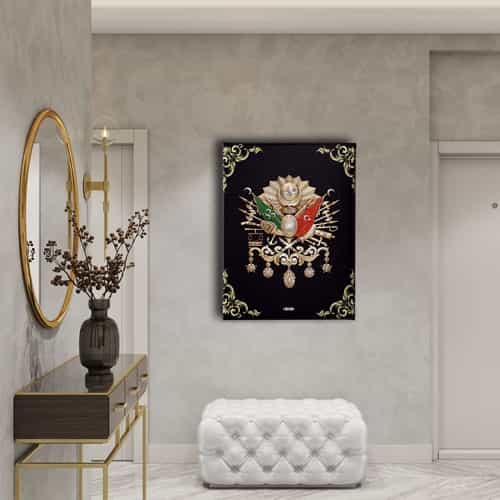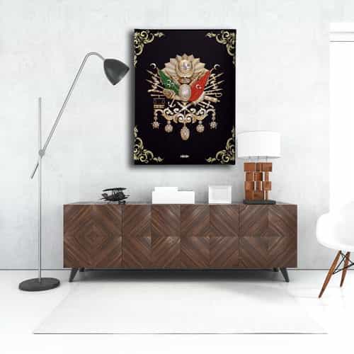 Siyah Osmanli Devlet Armasi Kanvas Tablo : Bu sik tablo, Desenlio'nun ozel koleksiyonunda yer alan premium bir tasarim urunudur. Kanvas Tablolar>arma Bayraklar kategorilerinde dikkat ceken bu parca, ABD112 urun koduyla yuksek standartlarda uretilmistir. Sanli Bayraklar Duvarlarinizda DalgalansinBir ulkenin en guzel temsillerinden biri bayragidir. Ofisiniz, eviniz veya siz neredeyseniz sanli bayraklardan olusan ve ozel olculerle uretilen kanvas tablolar ile duvarlariniz ulkenizden bir parca tasisin.Osmanli Devlet Armasi Kudretin SimgesidirOsmanli Devleti’nin gucunu hissetmek, gelen misafirlerinize bu gucu hatirlatmak icin Osmanli Devlet Armasi kan... Yasam alanlariniza sanatsal bir dokunus katmak ve duvarlarinizda estetik bir odak noktasi olusturmak icin idealdir.