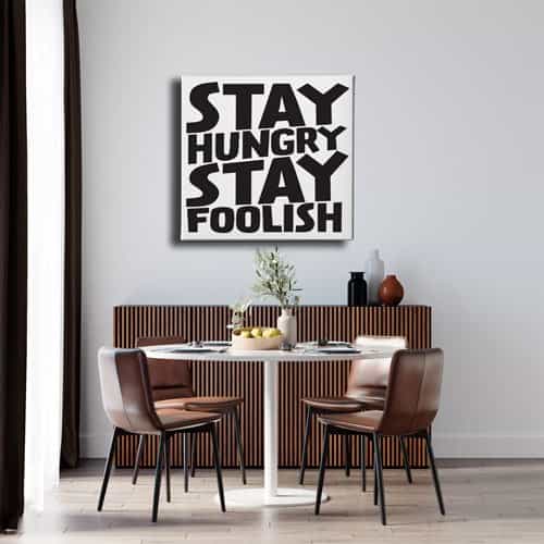 Stay Hungry Stay Foolish Canvas Tablo : Bu sik tablo, Desenlio'nun ozel koleksiyonunda yer alan premium bir tasarim urunudur. Kanvas Tablolar>cami Turbe Kutsal Emanet, Kare Gorseller kategorilerinde dikkat ceken bu parca, MINK120 urun koduyla yuksek standartlarda uretilmistir. Kucuk Dokunuslari Sevenler IcinGuzellikleri ayrintilarinda gizli olan minimal kanvas tablolar ile dekorasyonunuza modern dokunuslar katin. Minimal, estetik ve sik tablolar desenlio’da.... Yasam alanlariniza sanatsal bir dokunus katmak ve duvarlarinizda estetik bir odak noktasi olusturmak icin idealdir.